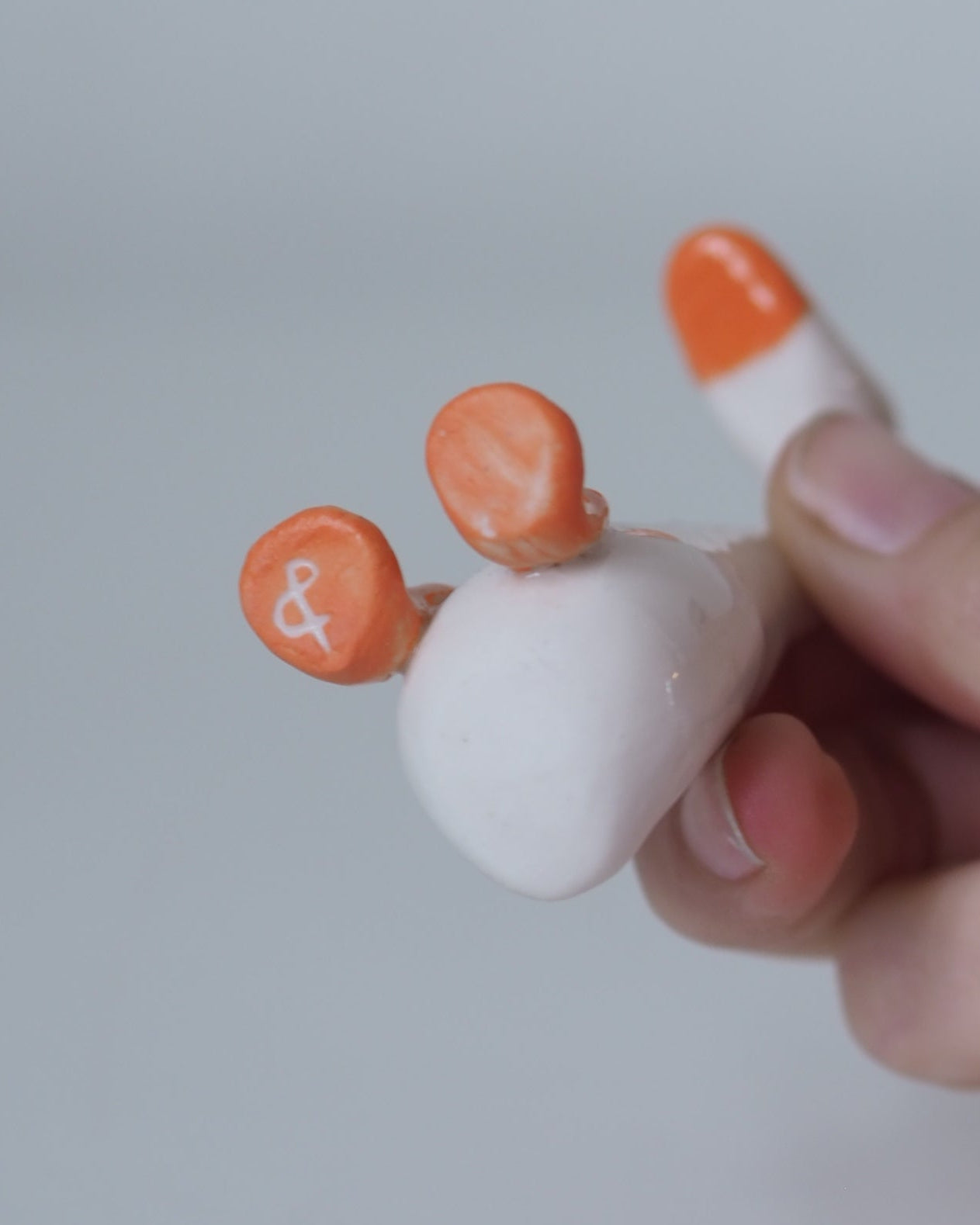 Inspired by the runner ducks from my parents' neighborhood. Each duck is handcrafted from porcelain, giving it its own unique character. The orange accents are applied with colored slip and finished with a transparent glaze.